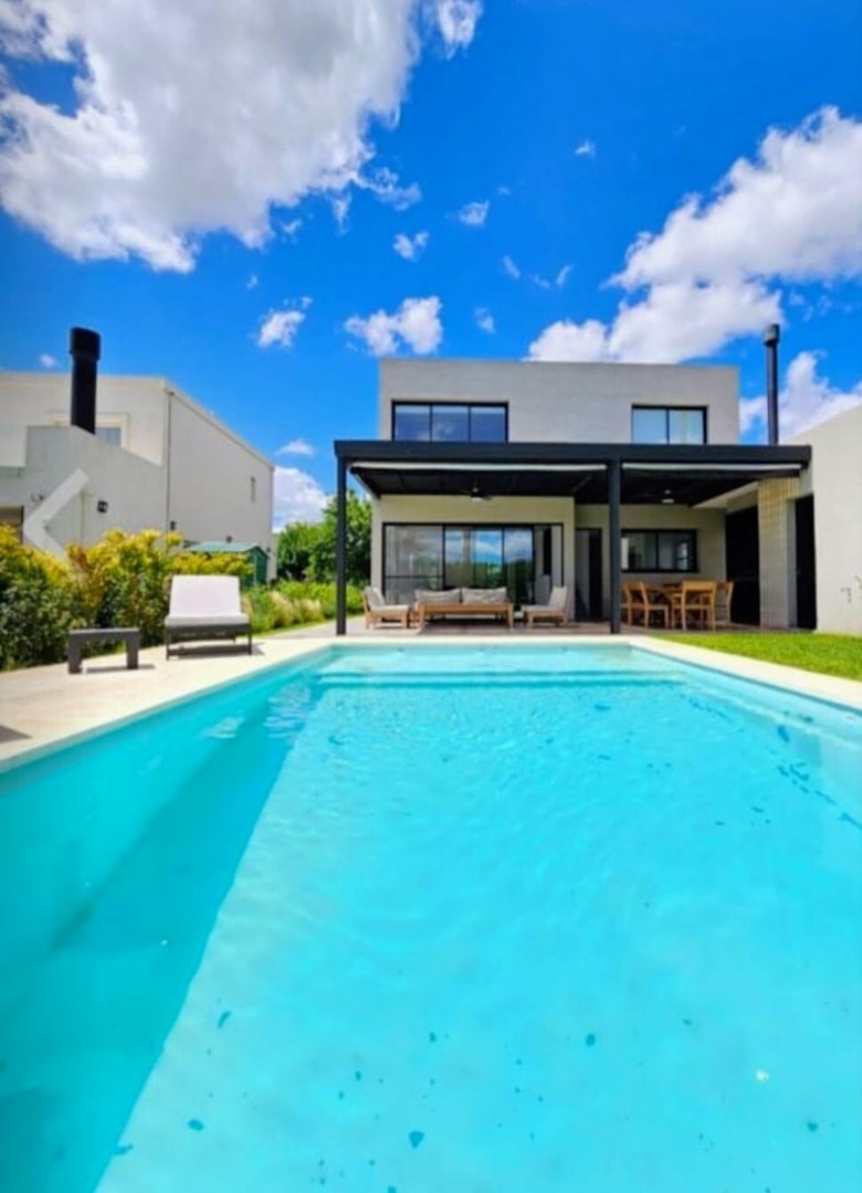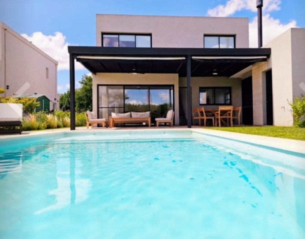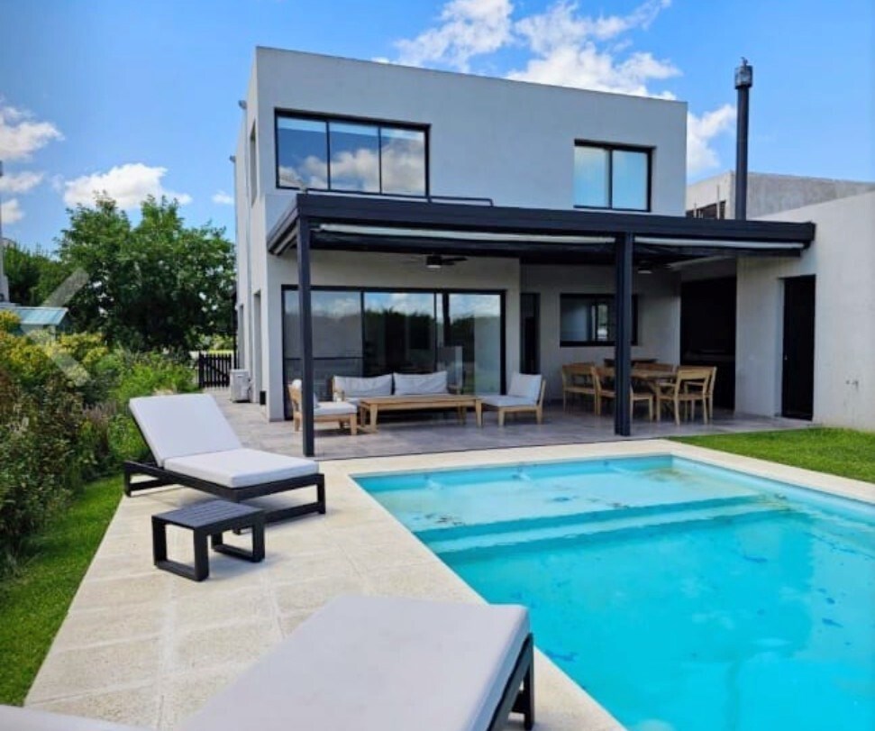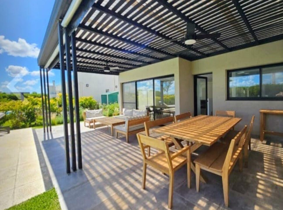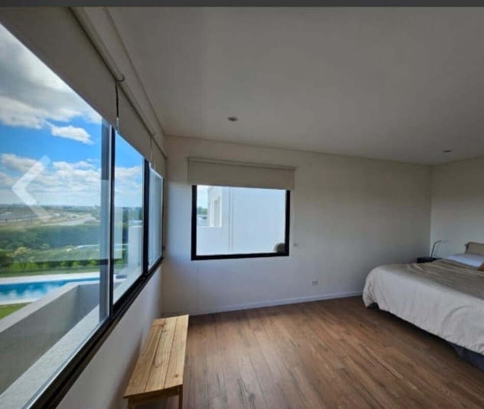 Hermosa Propiedad en Araucarias, Puertos del Lago Excelente estado de mantenimiento. AMUEBLADA DISPONIBLE DESDE 1/2/2026 al 31/10/2036 Cuenta con 4 habitaciones con placares completos, 3 baños completos, uno de ellos en planta baja, más baño de piscina y ducha externa. Estacionamiento cubierto para dos vehículos. Aberturas DVH (doble vidrio), losa radiante, riego automático. Lavadero independiente con salida al exterior. Cocina amplia equipada con Electrodomésticos (heladera, lavavajillas, lavarropa, secarropa). Aire acondicionado frío/calor en todas las habitaciones. Living comedor integrado: Mesa y sillas para 8 personas, dos sillones y mesa ratona. Exterior: Parrilla, galería con mesa y sillas para 8 personas. Habitaciones: En PB habitación dos camas de una plaza. En PA: Dos habitaciones con camas de una plaza y media, máster suite principal cama de 180x200 y baño doble bacha. Mesas de luz en todas las habitaciones.