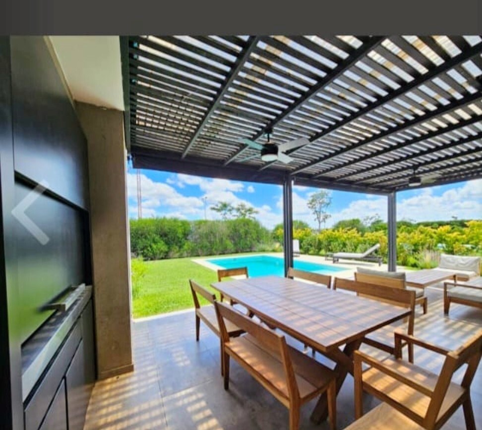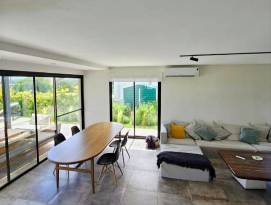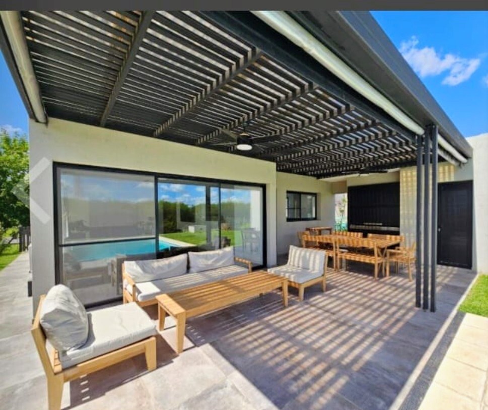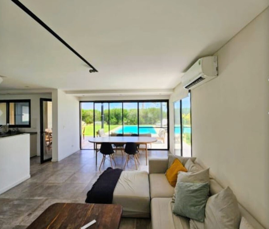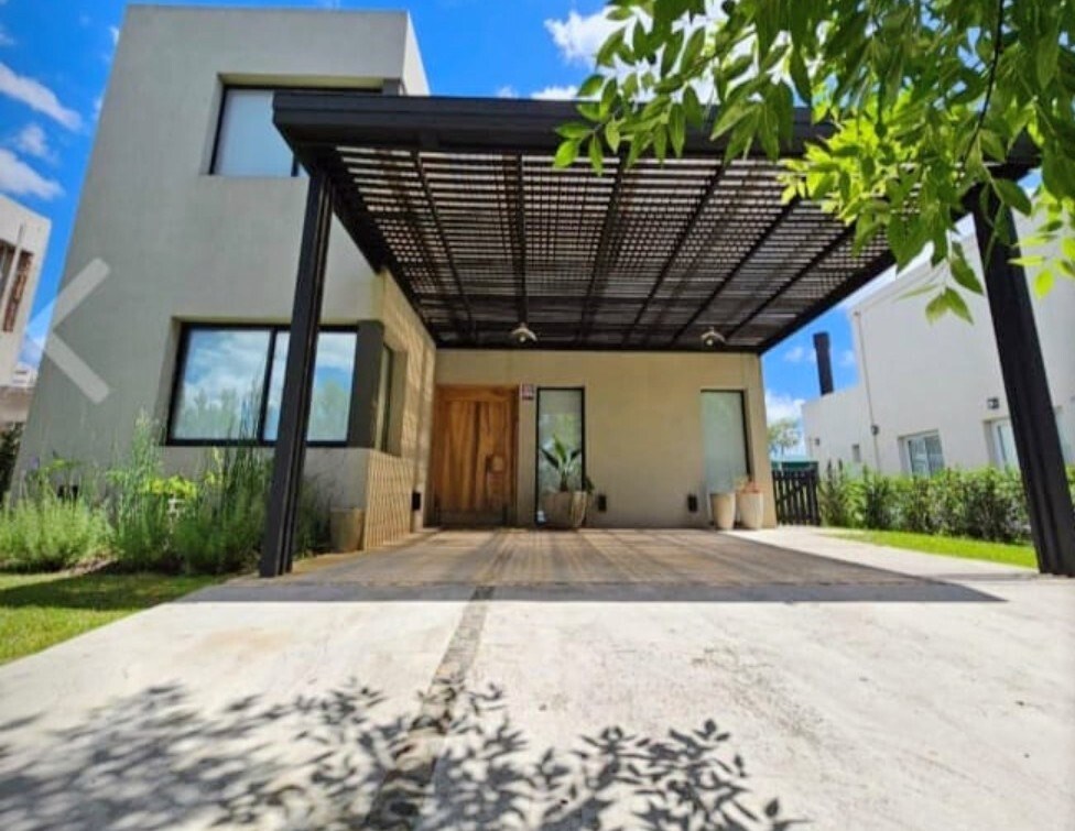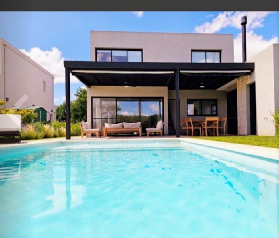 Hermosa Propiedad en Araucarias, Puertos del Lago Excelente estado de mantenimiento. AMUEBLADA DISPONIBLE DESDE 1/2/2026 al 31/10/2036 Cuenta con 4 habitaciones con placares completos, 3 baños completos, uno de ellos en planta baja, más baño de piscina y ducha externa. Estacionamiento cubierto para dos vehículos. Aberturas DVH (doble vidrio), losa radiante, riego automático. Lavadero independiente con salida al exterior. Cocina amplia equipada con Electrodomésticos (heladera, lavavajillas, lavarropa, secarropa). Aire acondicionado frío/calor en todas las habitaciones. Living comedor integrado: Mesa y sillas para 8 personas, dos sillones y mesa ratona. Exterior: Parrilla, galería con mesa y sillas para 8 personas. Habitaciones: En PB habitación dos camas de una plaza. En PA: Dos habitaciones con camas de una plaza y media, máster suite principal cama de 180x200 y baño doble bacha. Mesas de luz en todas las habitaciones.